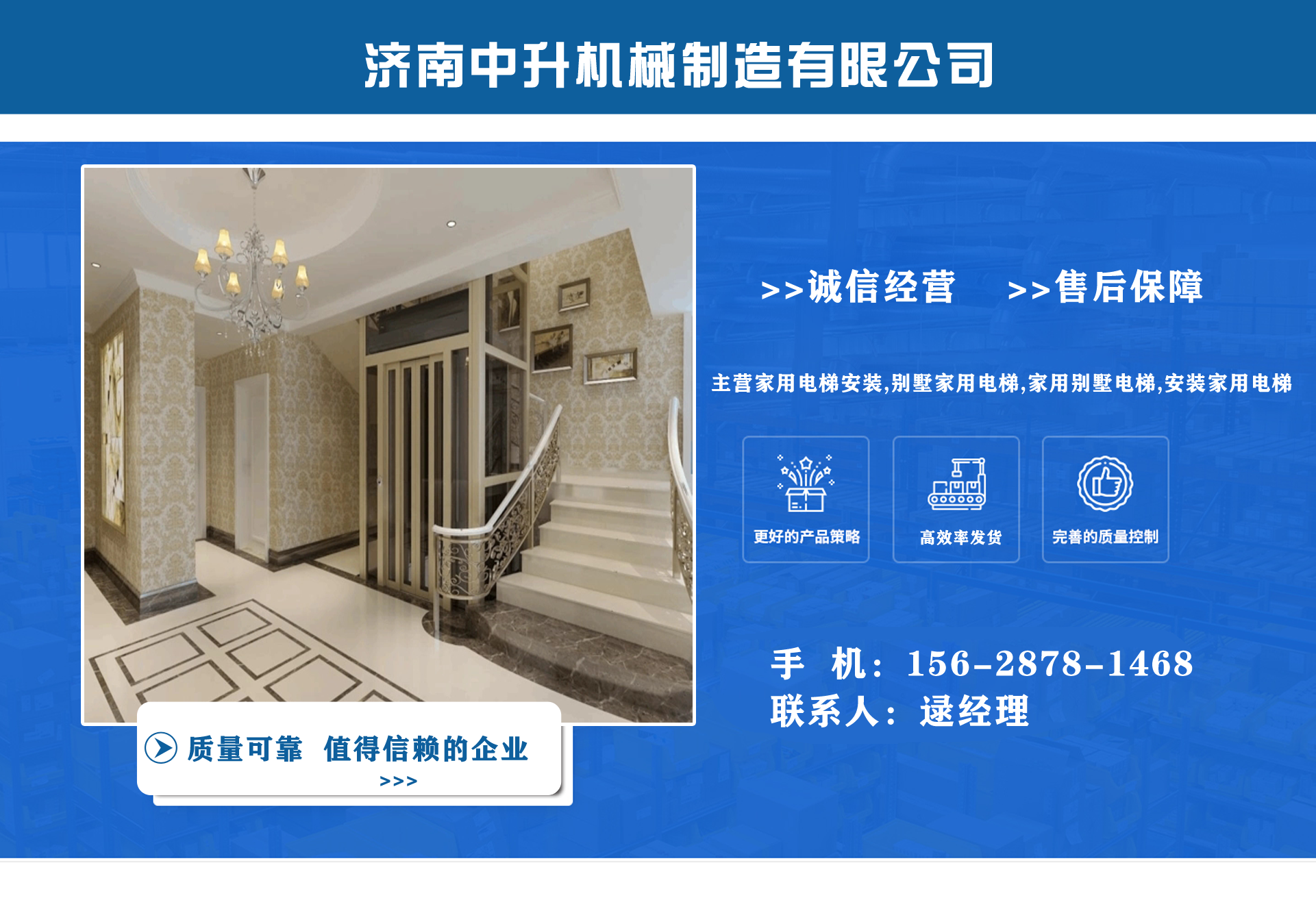 濟(jì)南中升機(jī)械制造有限公司主營家用電梯安裝,別墅家用電梯,家用別墅電梯,安裝家用電梯等業(yè)務(wù),質(zhì)量可靠,值得信賴! 公司為客戶提供免費上門測量,根據(jù)實際情況1對1服務(wù),保障符合用戶需求,終身提供售后服務(wù),讓用戶買的舒心用的放心。匠心團(tuán)隊,打造信賴產(chǎn)品,我們有團(tuán)結(jié)、奮進(jìn)拼搏的匠心團(tuán)隊,為您提供可信賴的品質(zhì)保證。 從創(chuàng)立以來一直嚴(yán)格執(zhí)行質(zhì)量管理體系、環(huán)境管理體系等相關(guān)標(biāo)準(zhǔn)管理體系,“顧客滿意”是我們始終如一的追求。我們有屬于自己培養(yǎng)的安裝隊伍,24小時服務(wù)電話,為您提供可靠的服務(wù)與支持。 我們的愿景是建設(shè)國內(nèi)具有影響力的電梯公司,做城市美好空間的好伙伴。...